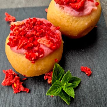 Mit Sorgfalt rundgeformt und leicht vertieft, gefüllt mit einer samtigen Erdbeercreme und einer feinen Zitronen Note.